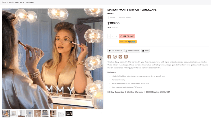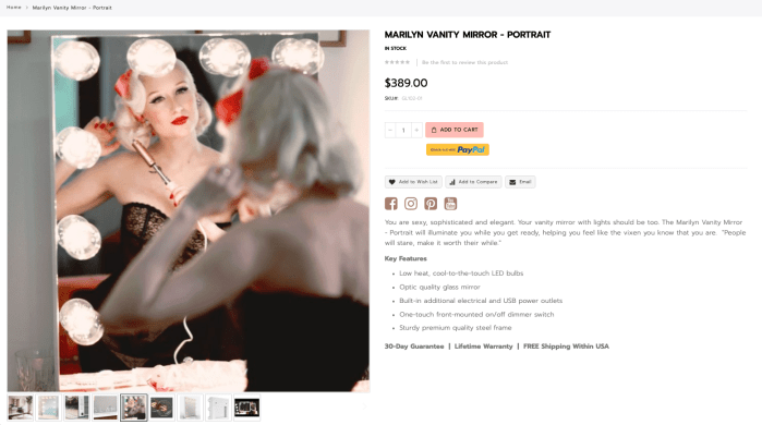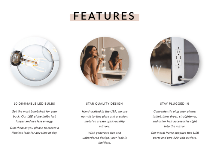 The Challenge: Positioning the product to be notable and worthy of cost by highlighting the luxury of the product. There is a lot of vanity mirrors on the market and because they are made overseas the cost of competitor’s mirrors was drastically less than what the CEO wanted to sell GLAMMY’s mirrors for.